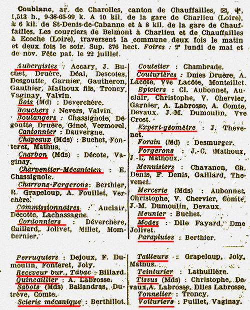 Retrouvons nos commerces et artisans de Coublanc en 1914 à travers divers objets, documents et publicités.