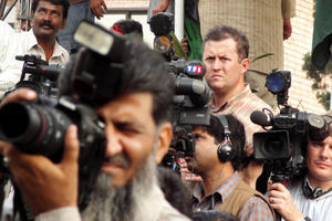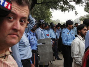 Bertrand Lachat en reportage aux quatres coins du monde avec son ami journaliste de TF1, Michel Scott.