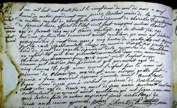 de Sâone et Loire, officier de l'état civil, sont comparus antonie Boland