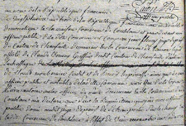 démocratique en la maison commune de Coublanc et par devant moi officier public de Laditte commune de Coublanc est comparu Jean fleury juge de paix du