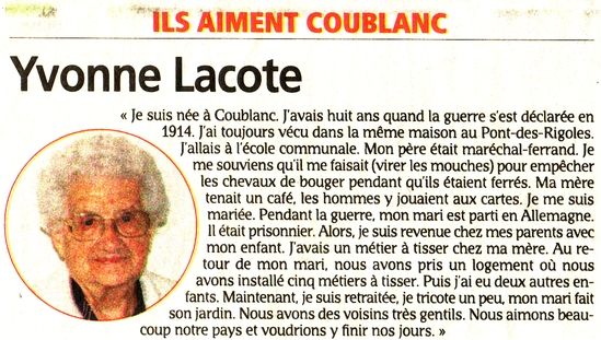 Né à l’Orme il y a 92 ans, M. Henri Raymond Lacôte est resté toute sa vie à Coublanc.